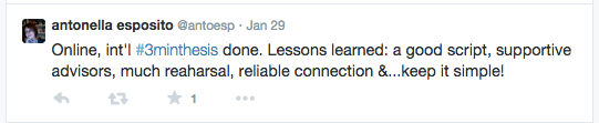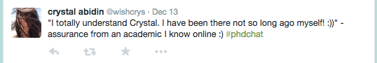 @wishcrys: Since I started using [Twitter] more actively, I’ve had more visibility up the hierarchy, professors or people whose books I use follow me because I’ve happened to mention them or their work…and also more PhD students from outside my geographical area.