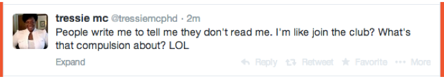 @tressiemcphd: You live with the effects. You’re very much a thing…I’ve had a whole group of people who are hard-core dedicated haters who follow me from platform to platform, and none of them have ever met me. They think the person in the machine is the person, they think what I’m doing online is a performance, an affect, and they want to be the ones to prove it to people. I usually quietly unfollow people they go to and let that tie go…I have the right to hold the space.