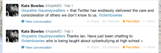 @KateMfD, countering the way cyberbullying is framed for her teen daughter with the assertion that networks are also sites of care:
